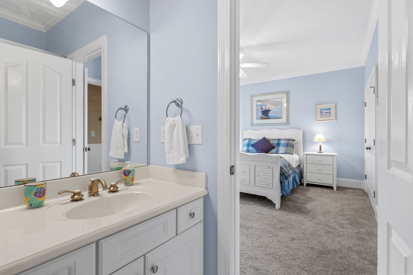 The location of this home is within the beautiful, private and gated community of Dolphin’s Ridge. The beach access is located at the split of Dolphin Ridge Road and Sandy Court which is where you will be able to leave your cart for a day at the beach. The walk to the beach is approximately a 5 minute stroll as you are just around the corner from the access although the golf cart makes it a breeze.