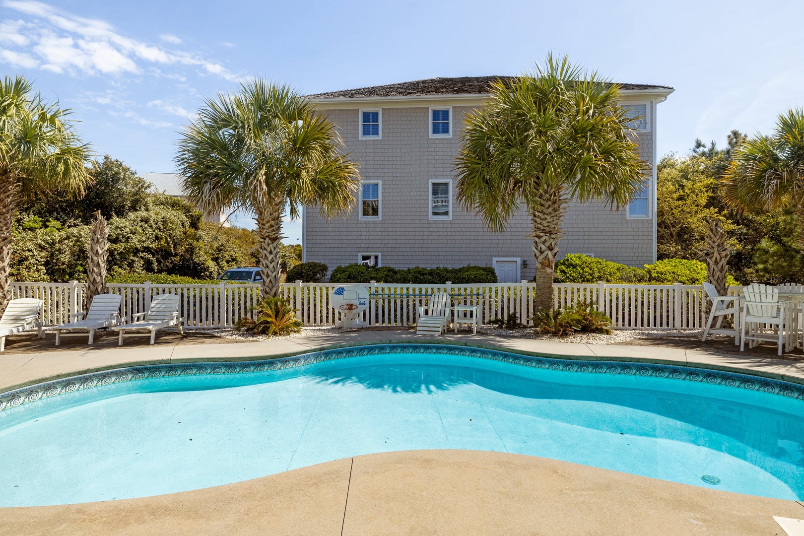 Makin' Waves is a magnificent home that has a classic, luxurious feel throughout the entire 3 floors of spacious gathering spaces and comfortably appointed bedrooms. The exterior also has much to offer, with multi-level covered and uncovered decks on the front and back side all adorned with furniture for relaxing and sunbathing. Make watching the sound-side sunset a ritual from the porch swing in the front, and enjoy views of the ocean, as well as the family making memories in the private pool, from the back.