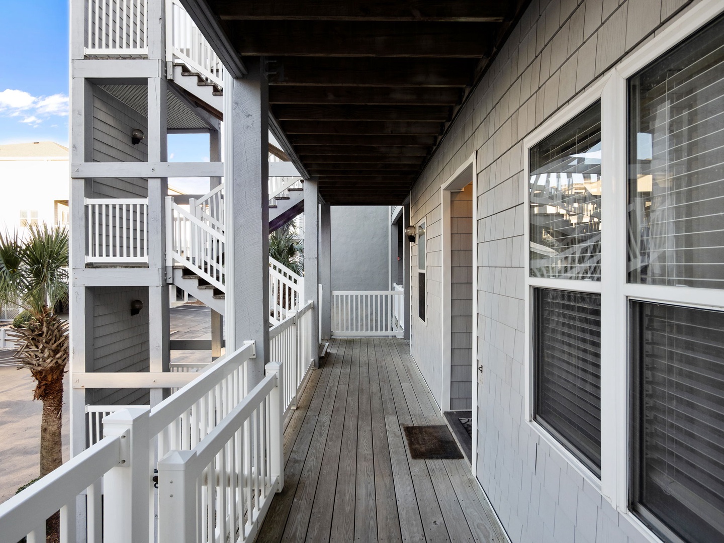 Relax on your private covered balcony overlooking coastal dunes and palm trees, perfect for morning coffee or evening unwinding.